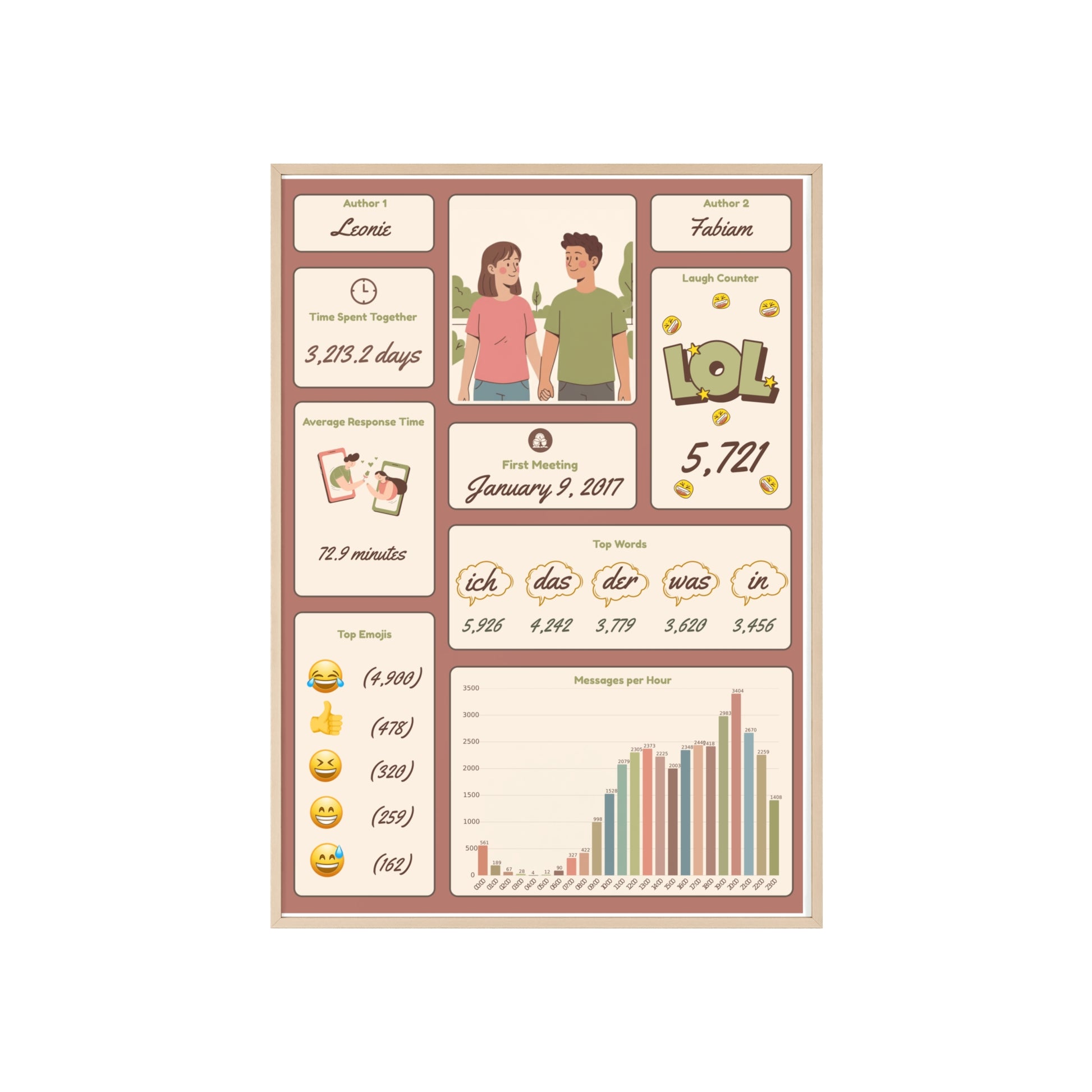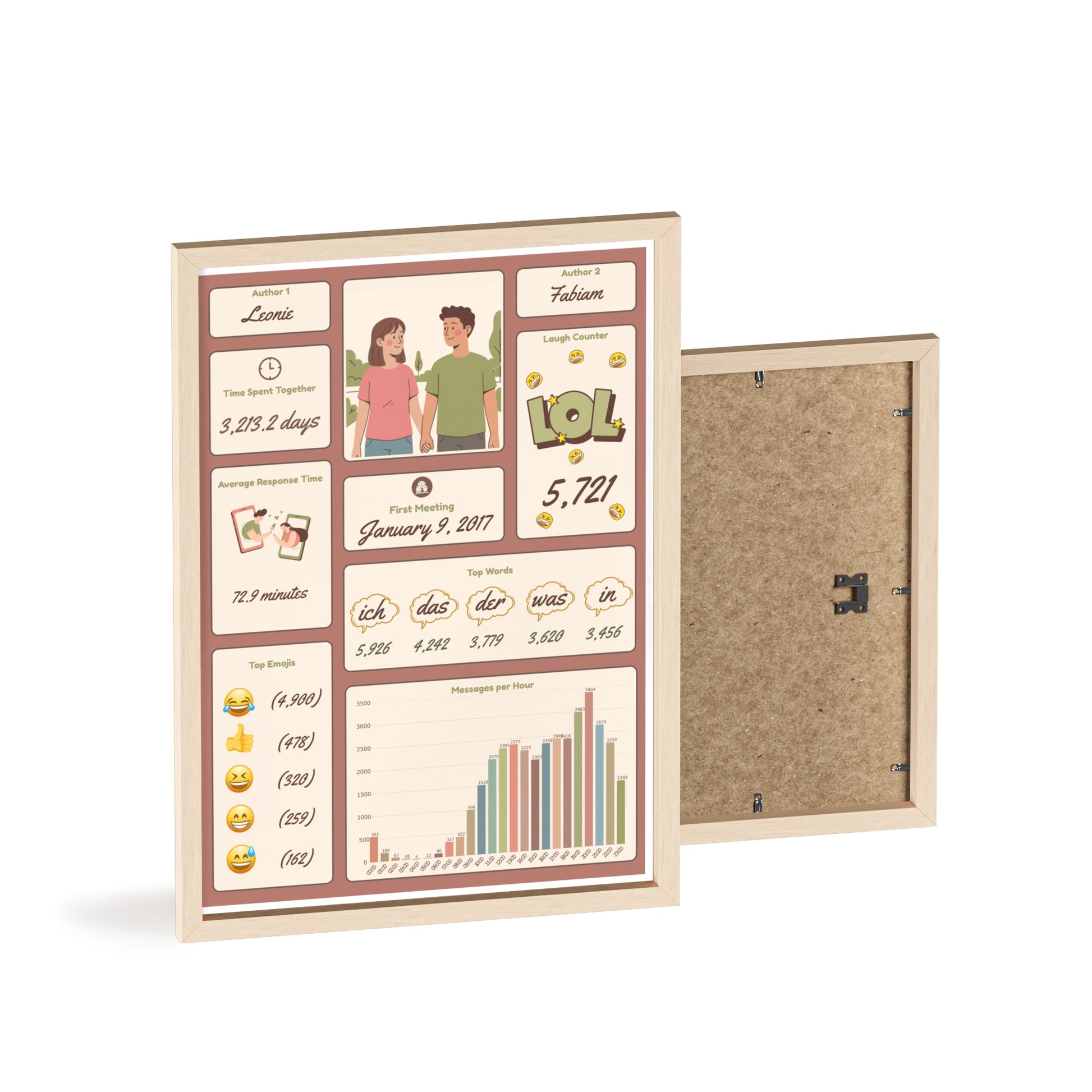 Bewahre deine schönsten Gespräche für immer – mit ChatArt, der personalisierten Wandkunst aus deinen Chatverläufen. Egal ob WhatsApp, Telegram oder Messenger: ChatArt verwandelt emotionale Nachrichten, Emojis und gemeinsame Erinnerungen in ein stilvolles, hochwertig gedrucktes Kunstwerk.